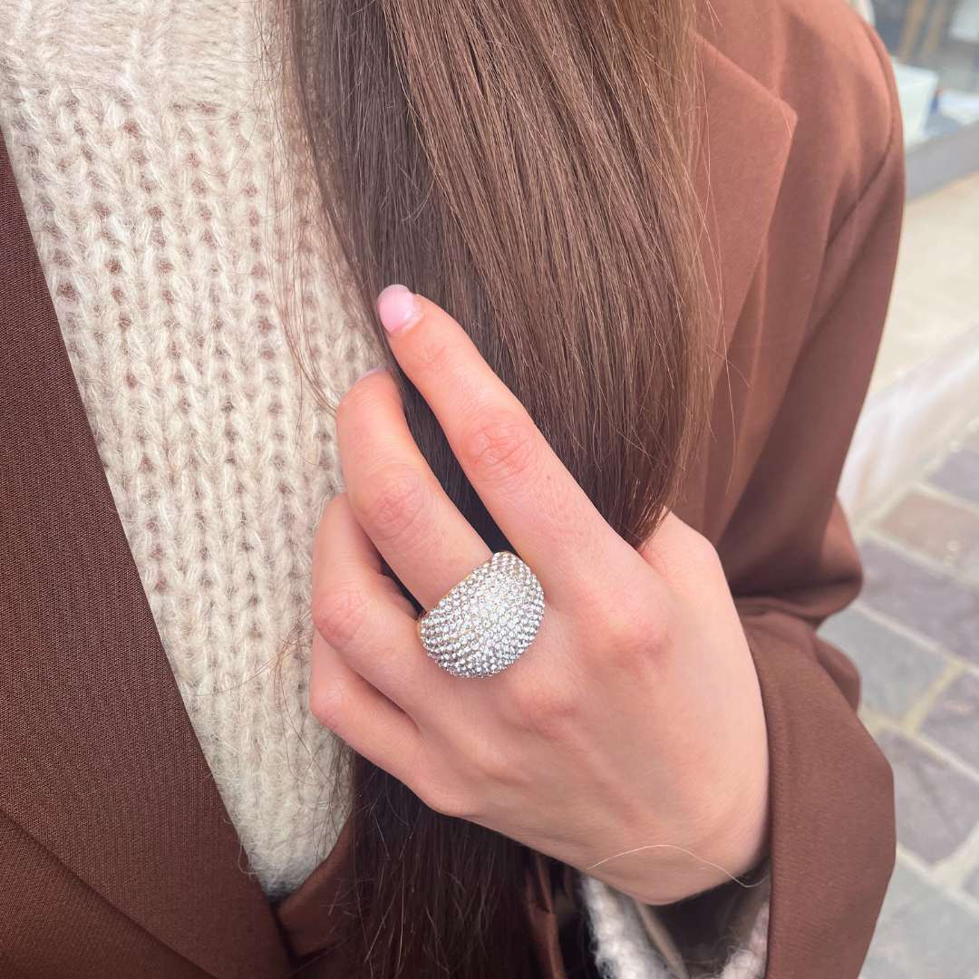 L'Anello Ginevra esprime carattere e indipendenza. Il design elastico in metallo nichel free, arricchito da strass luminosi, si adatta con grazia a ogni mano. Ideale per serate ed eventi importanti, dona un tocco di maestosità e raffinatezza a chi lo indossa.